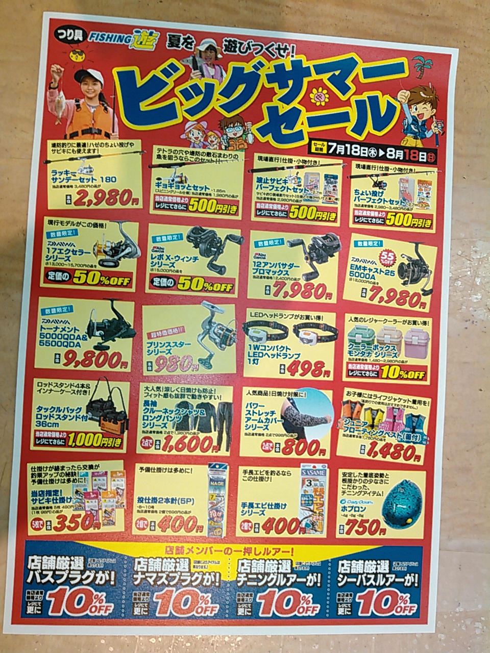 2019.07.17明日7月18日(木)からビッグサマーセール開催させて頂きます!