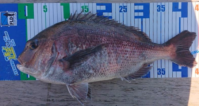 この日の釣果はマダイ二尾とツバス一尾でした。(乗り切らないあたりも多数。)