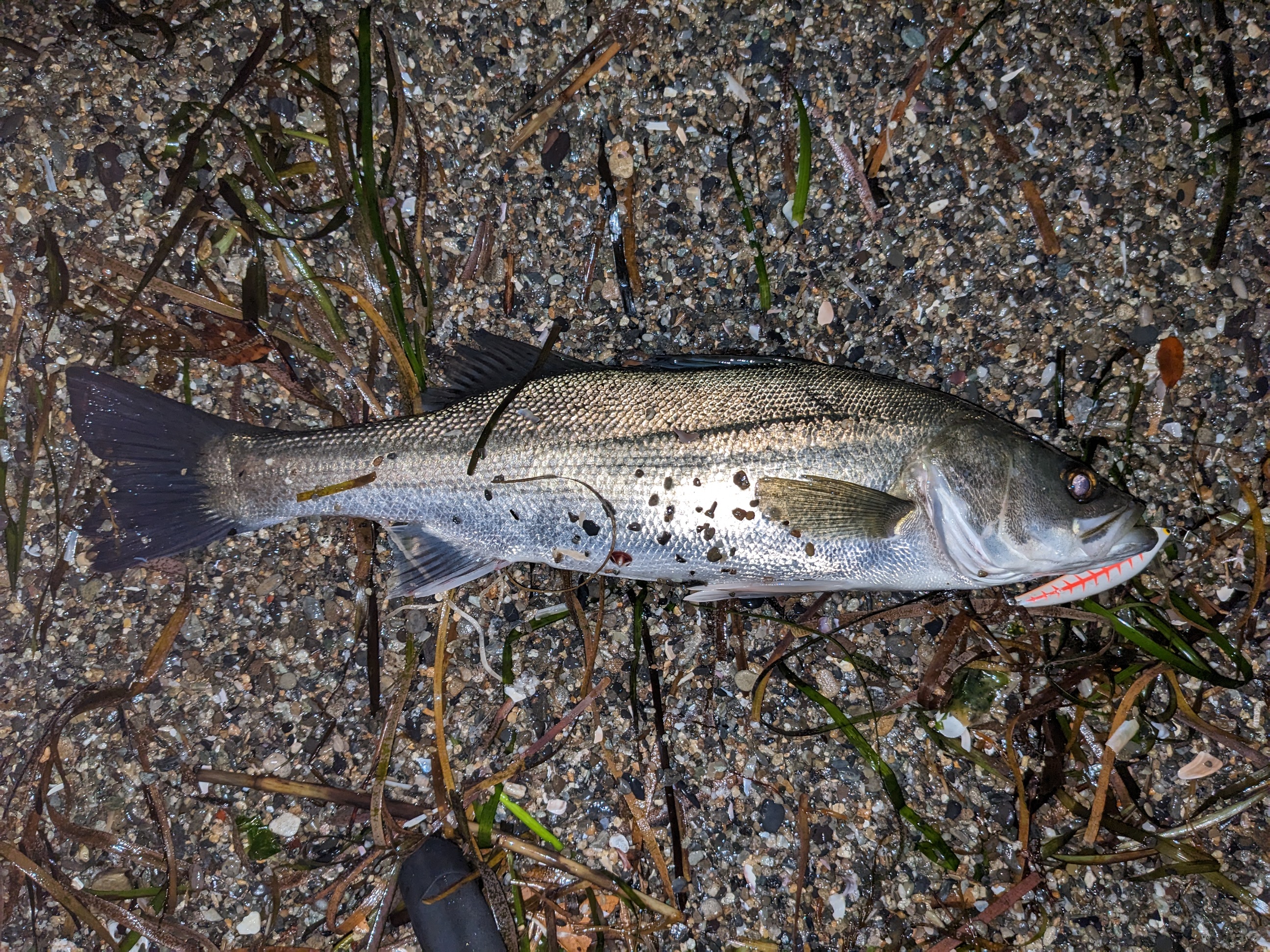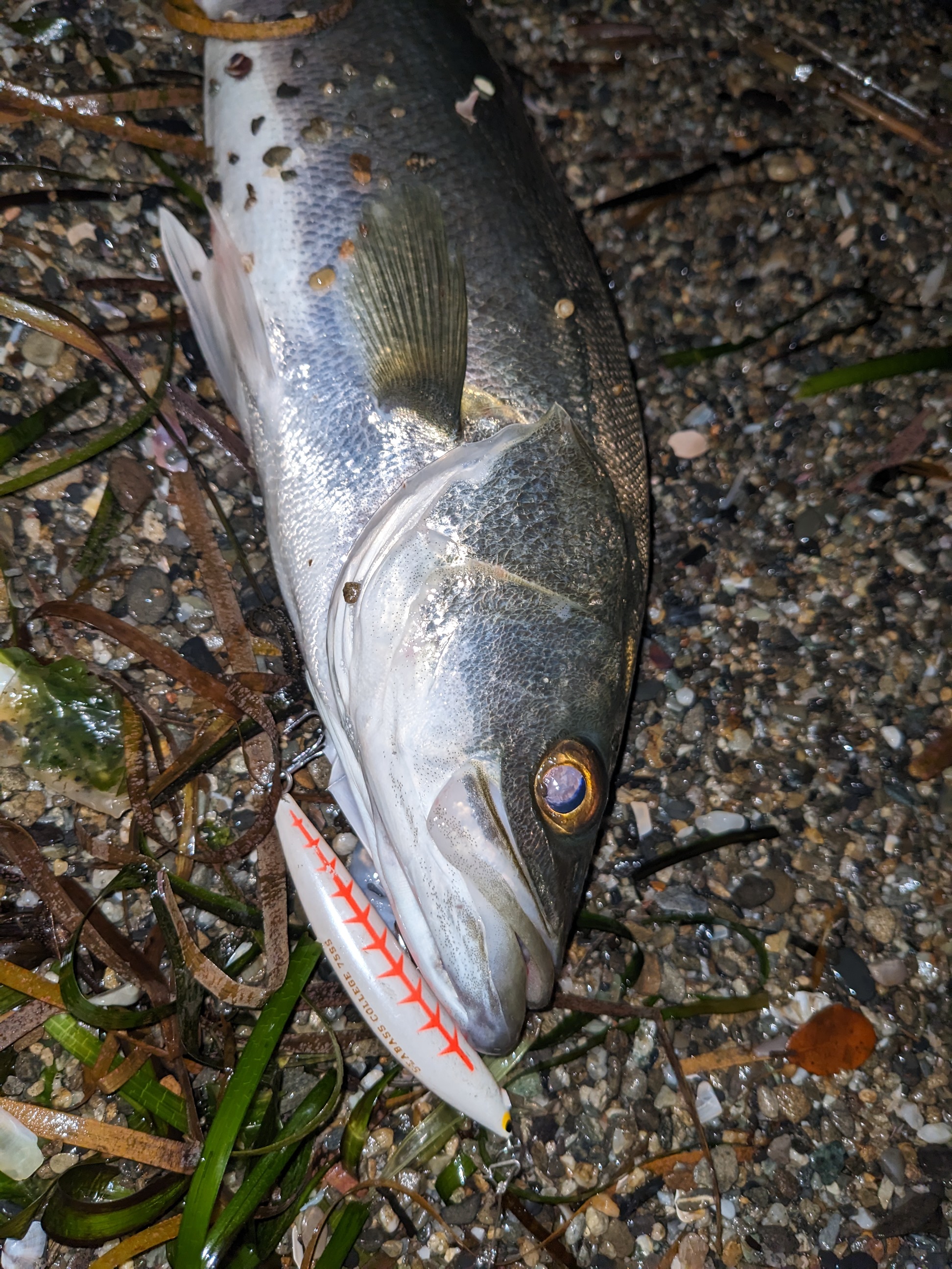 久々のシーバス。ルアーは75ミリと春らしい?サイズです。120ミリ→95ミリ→75ミリと落としてからのGET。春は小さいルアーの方に分がありそうです。
