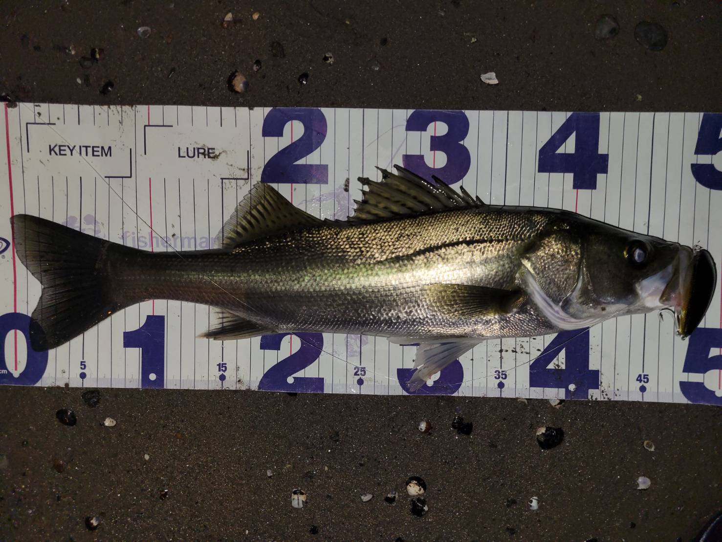 なんとかヒット持ち込んだシーバスを無事ランディング!!
