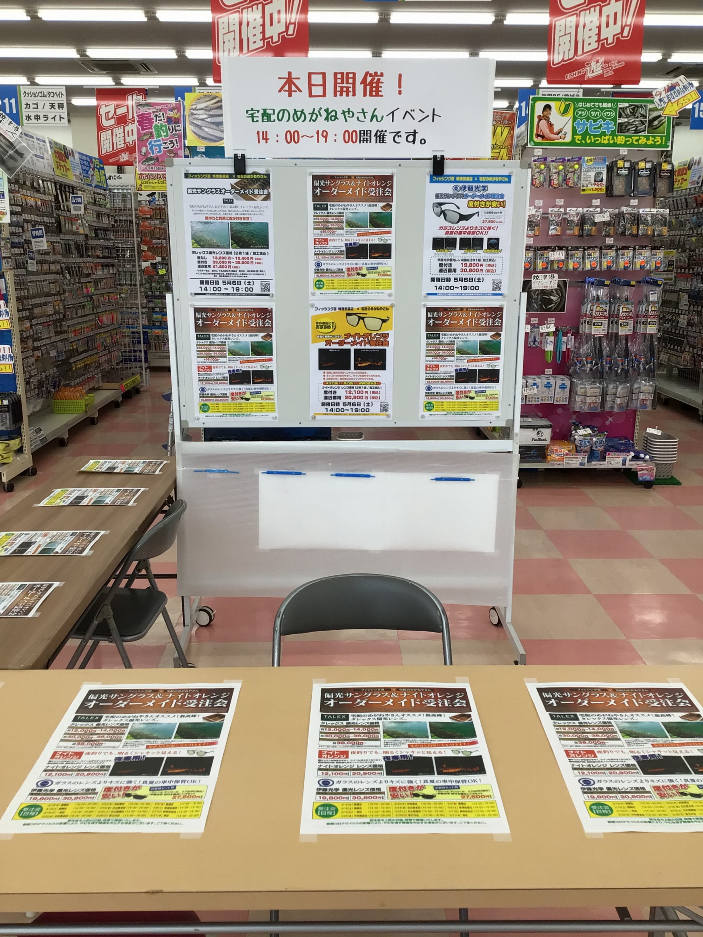 本日、14時より宅配のメガネ屋さんの偏光サングラス受注会を開催いたします。(^^)/