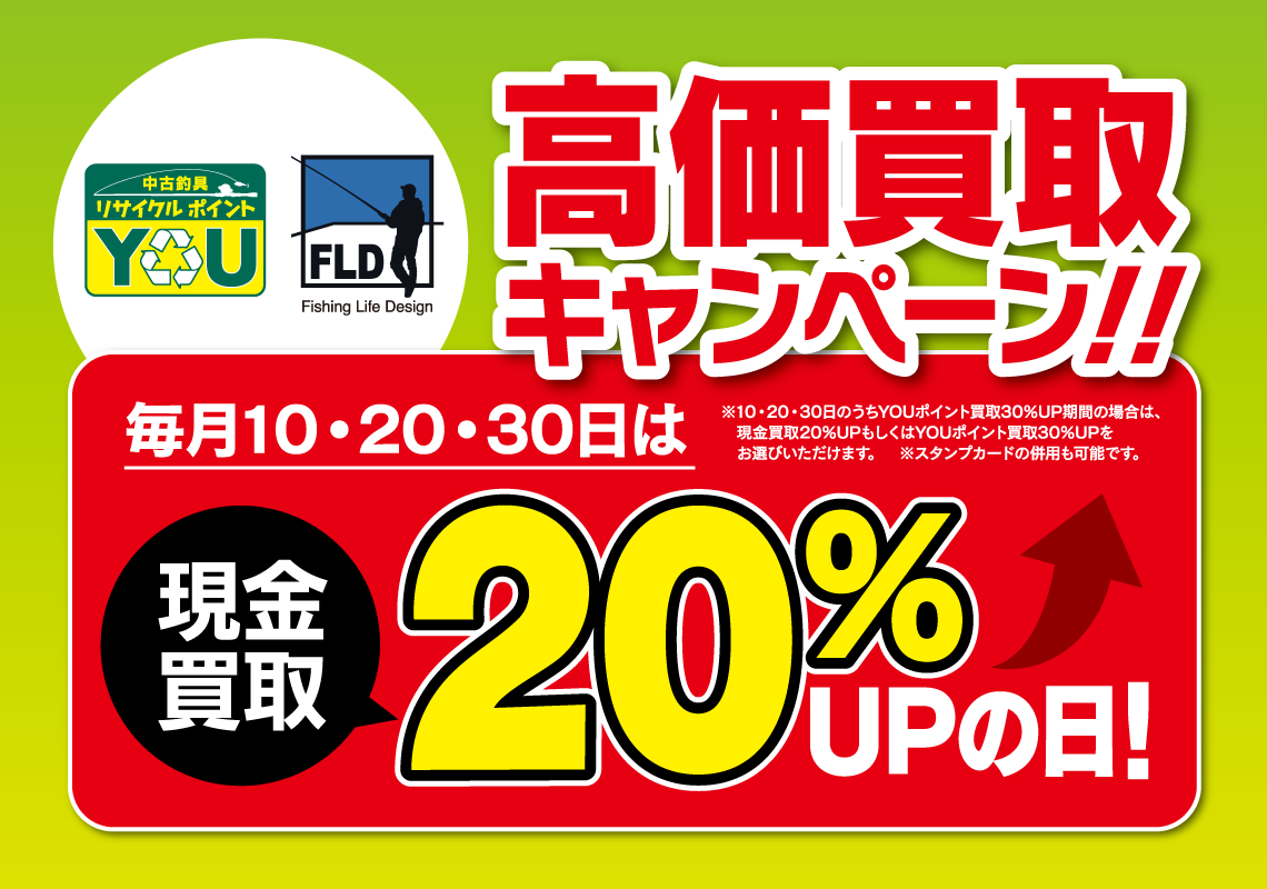 愛知県・静岡県内のフィッシング遊・FLD店舗対象!毎月2と5のつく日(2日・12日・22日・5日・15日・25日)は、ポイントが2倍になります!