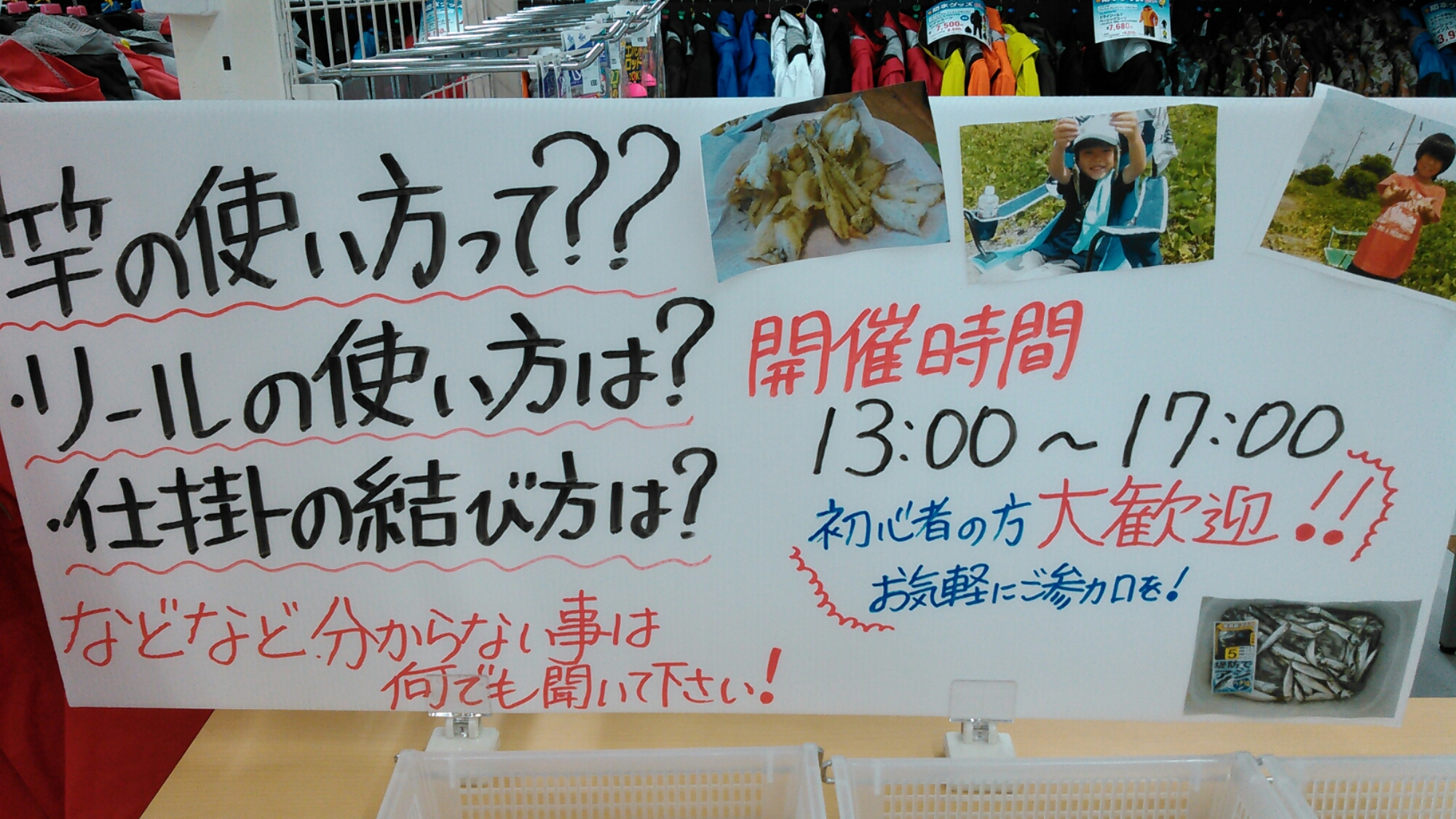 質問することがわからない場合もありますので釣りを始める以前のお話など、なんとなく始めてみようかな~でもかまいませんのでスタッフ中村がわかりやすく説明します。