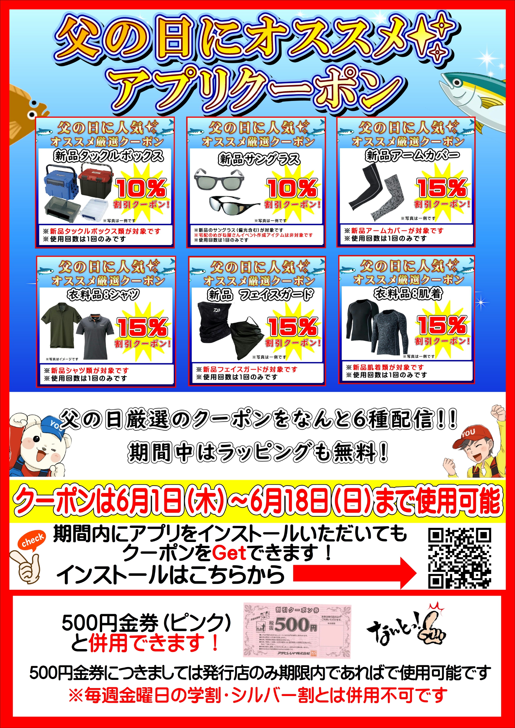 タックルボックスをはじめ、夏に向けた衣料のクーポンを配信中!