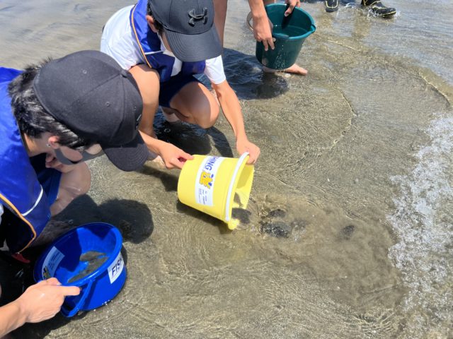 津ヨットハーバー、釣り場清掃、稚魚放流!
