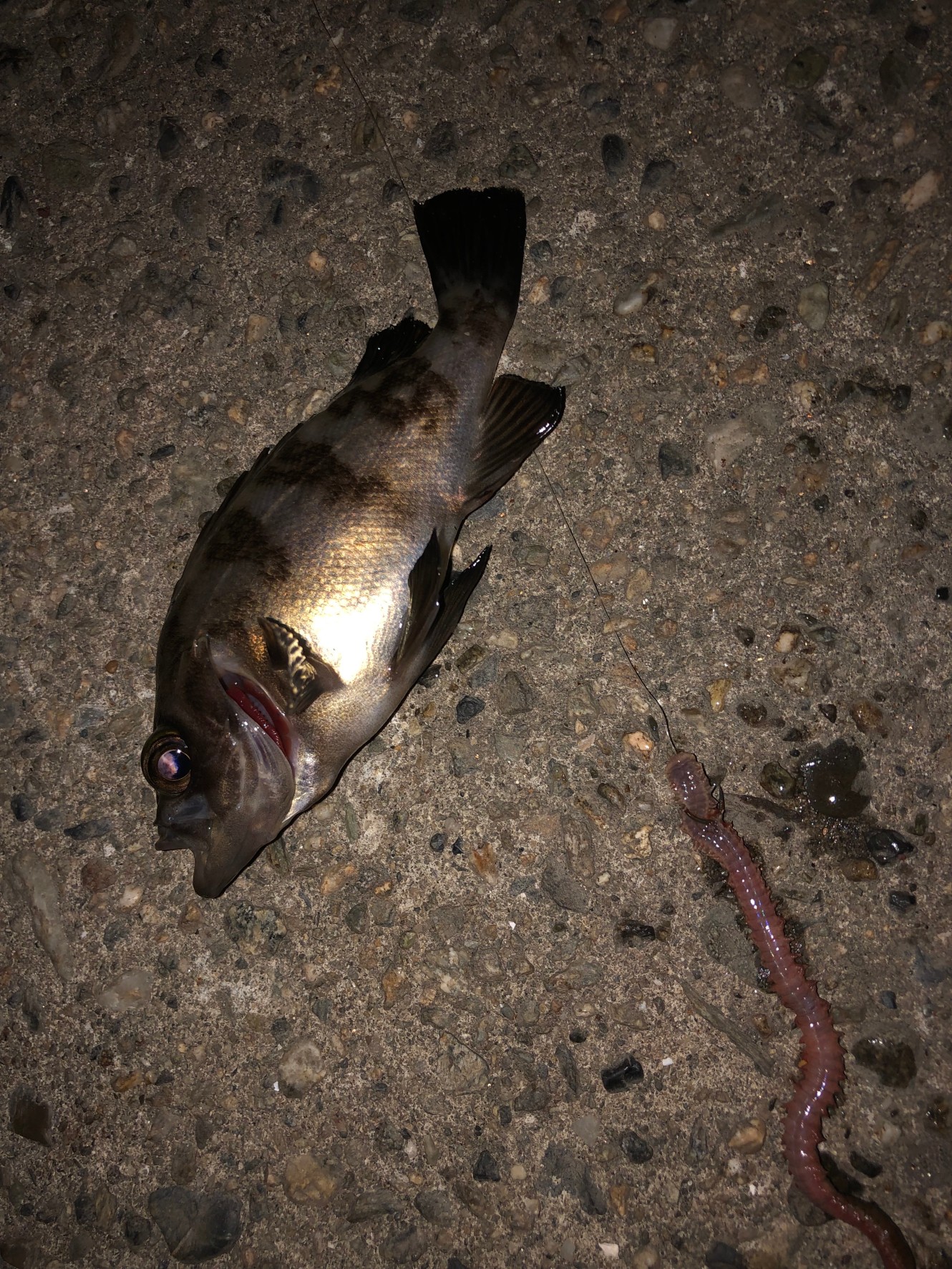 電気ウキの仕掛けで青イソメを使うと15cm程のメバル!