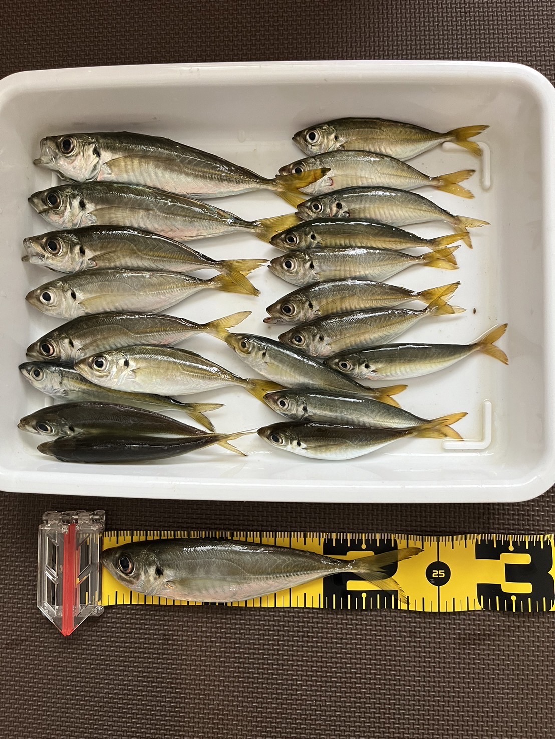 2024.10.19スタッフ加藤です。浜名湖でアジが釣れています。お客様が新居海釣り公園でサビキ釣りをして良型混じりでアジを
