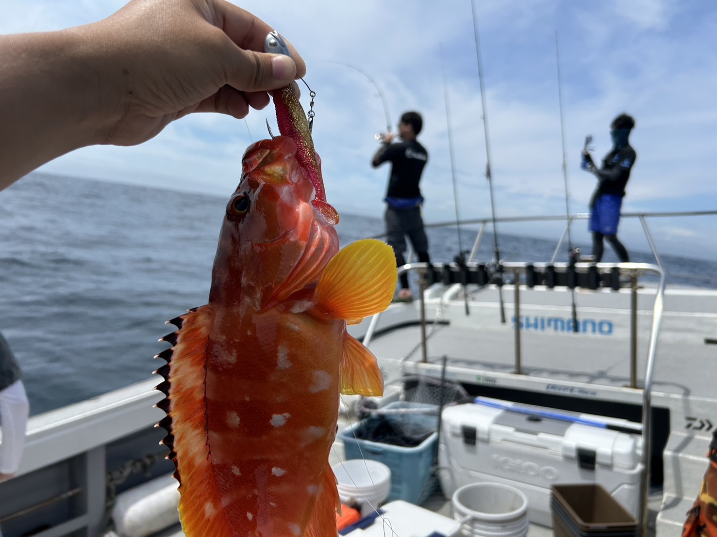 チャーター便ということでタイラバをしたりワームでスイミングゲームをしたりいろんな釣り方で楽しめることができました。