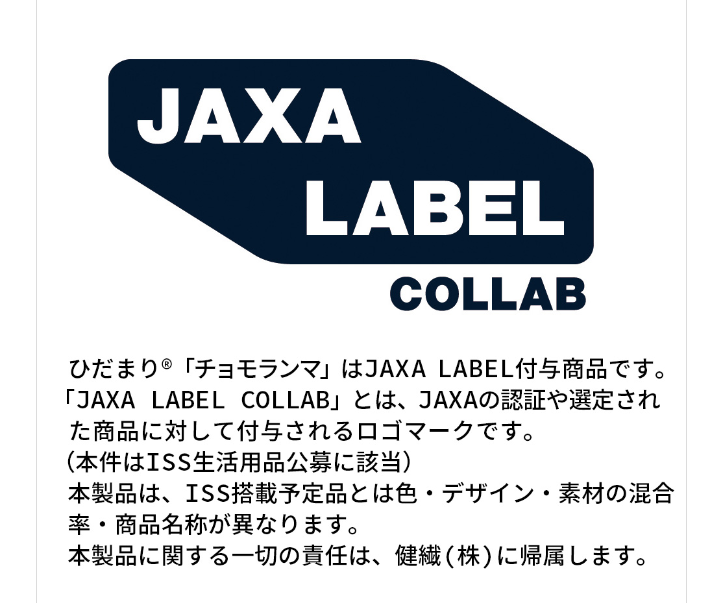 先日当店で展示即売会を開催していた、ひだまり・チョモランマの肌着の上を購入。購入の決め手はJAXAラベル。