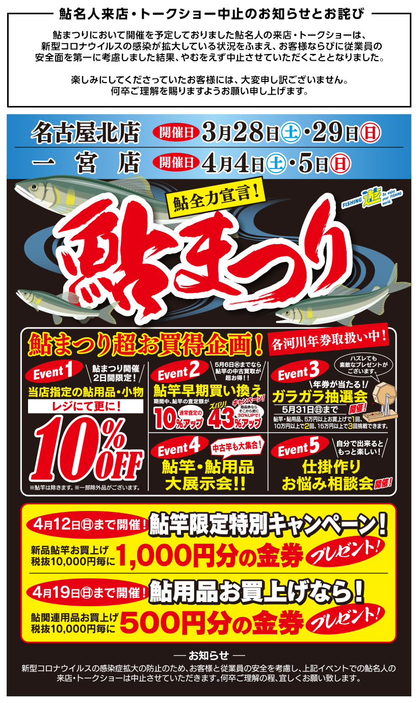 さらに鮎竿、鮎用品の大展示会や仕掛け作り&お悩み相談室も開催します!