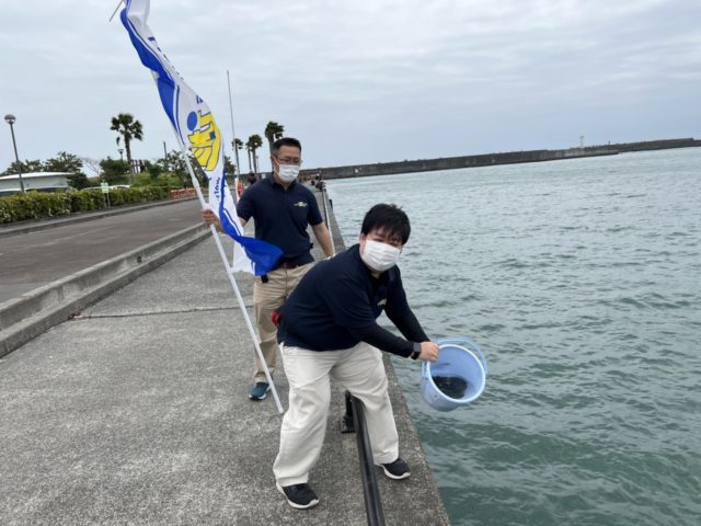 焼津港ふぃしゅーなにヒラメ稚魚1600匹放流しました( *´艸`)