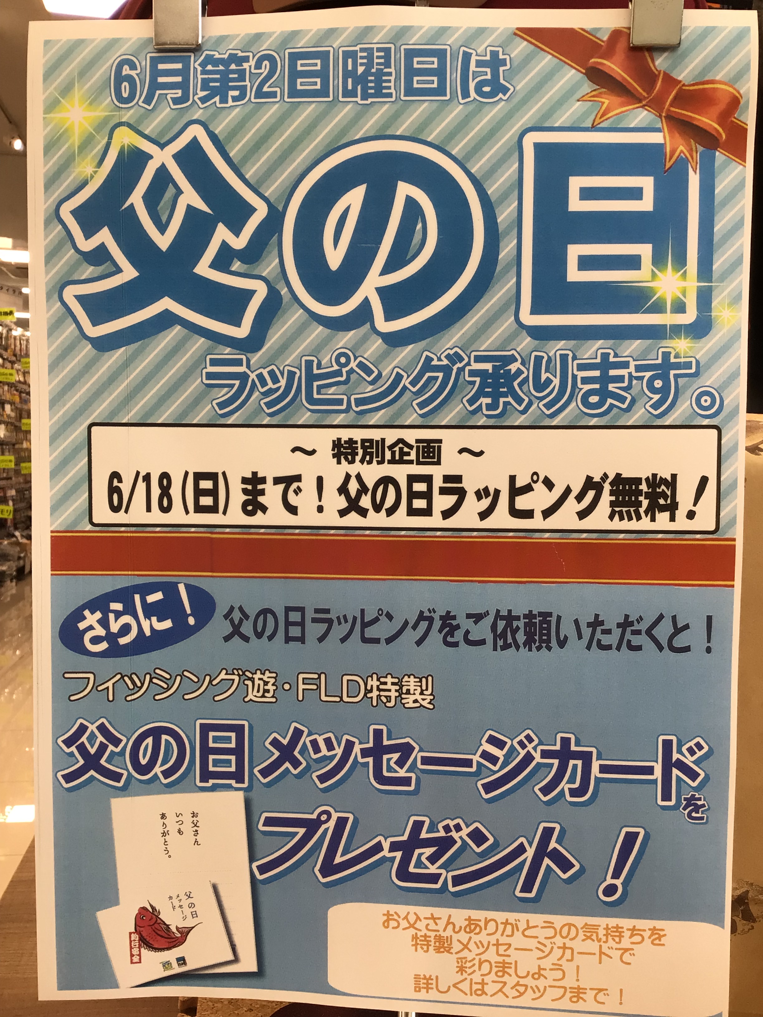 父の日のプレゼント包装は、本日まで無料!ご希望の方には、メッセージカードをプレゼント!