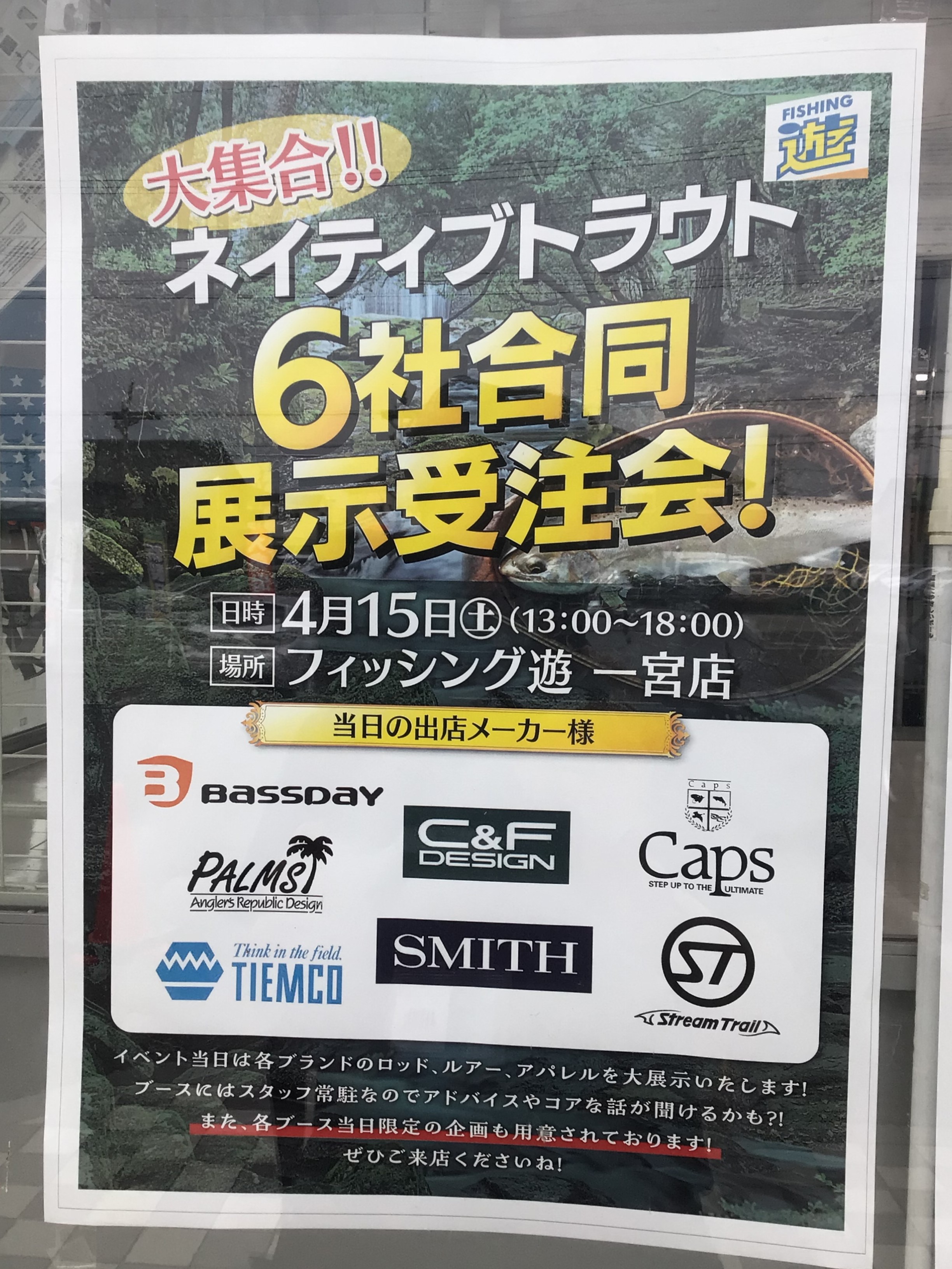 また当店では、イベントとして4月15日ネイティブトラウト展示受注会を開催いたします。
