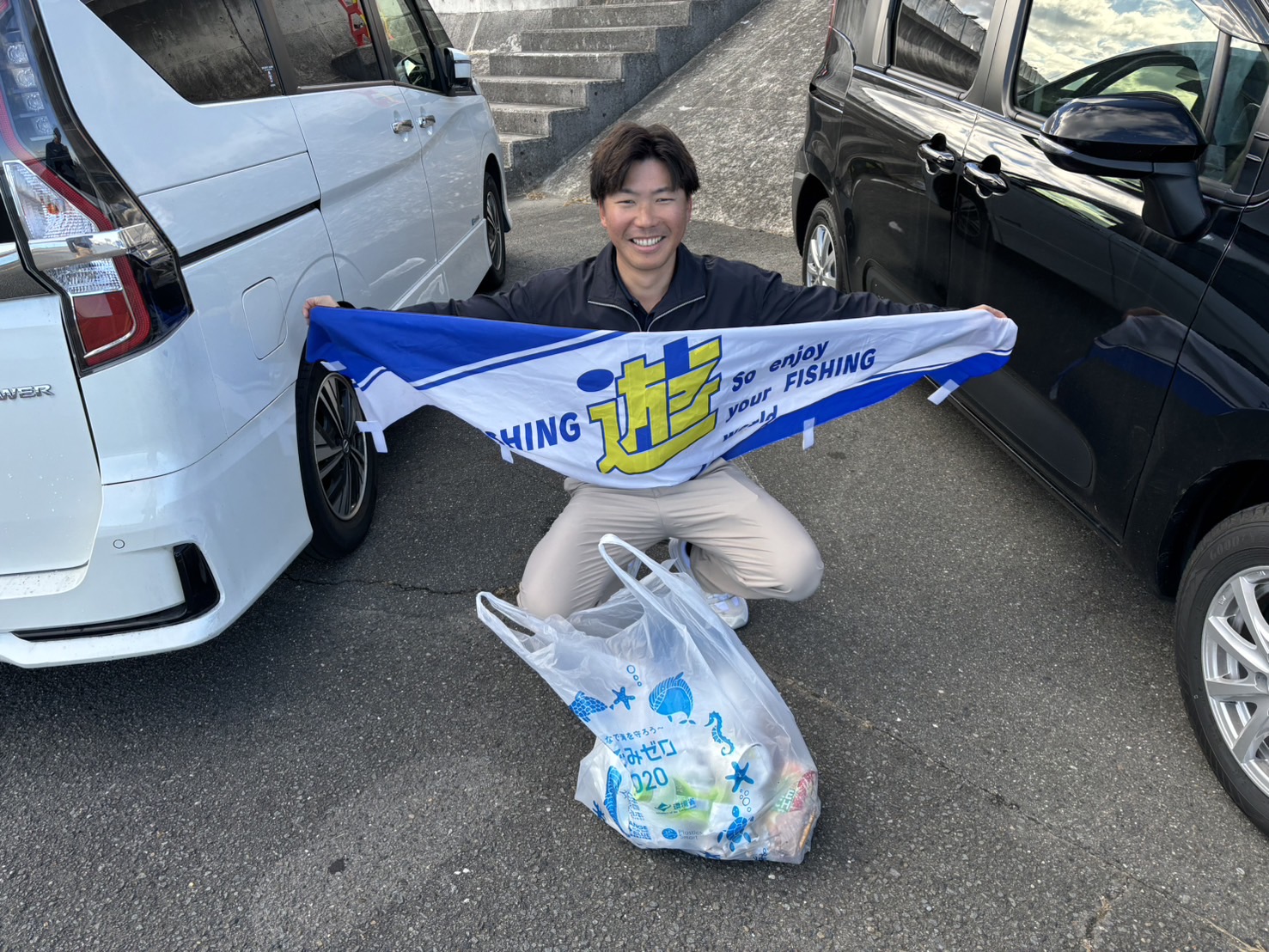 本日、桑名店の冨田と共に赤須賀漁港へ釣場清掃に行ってきました!