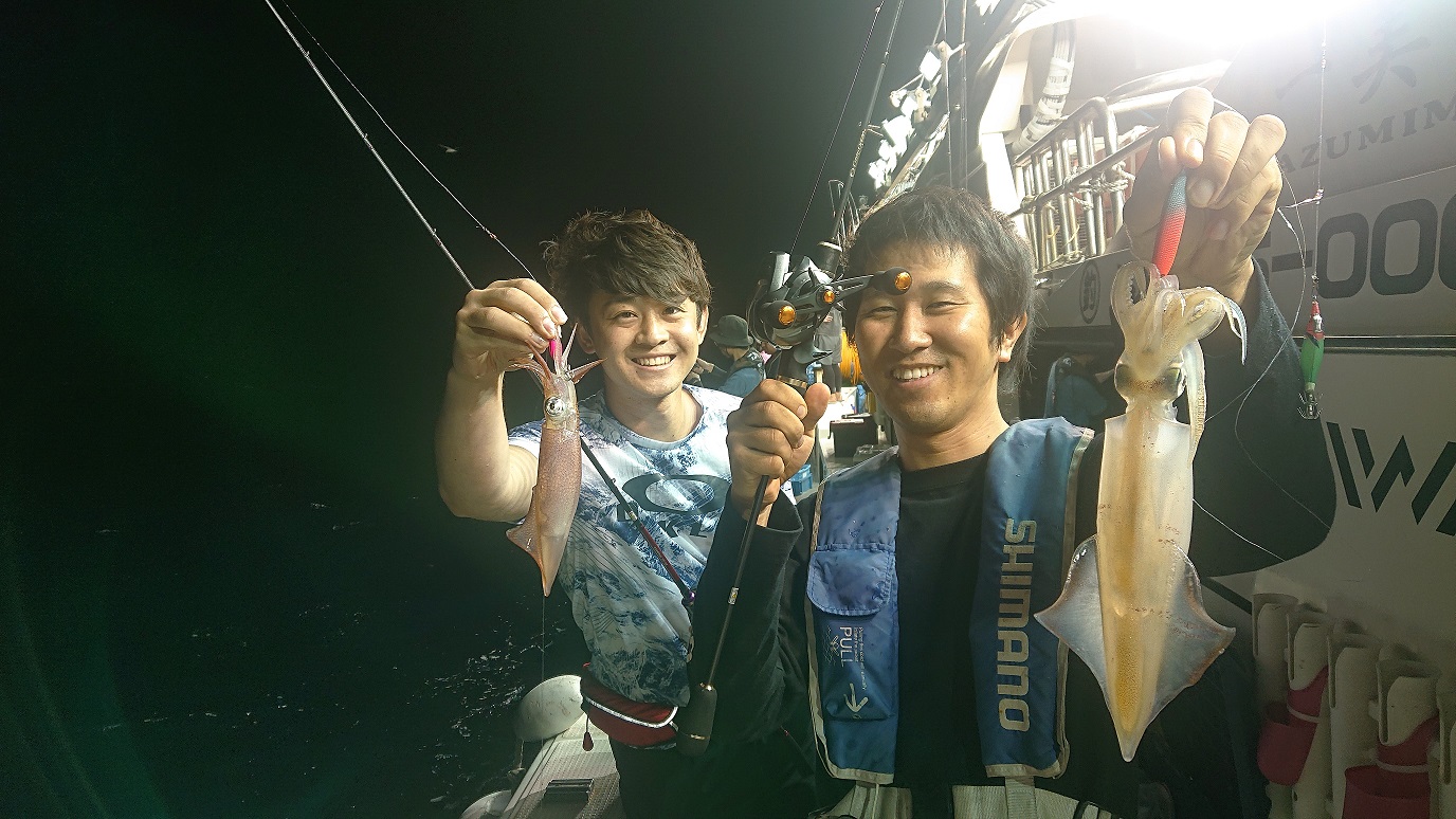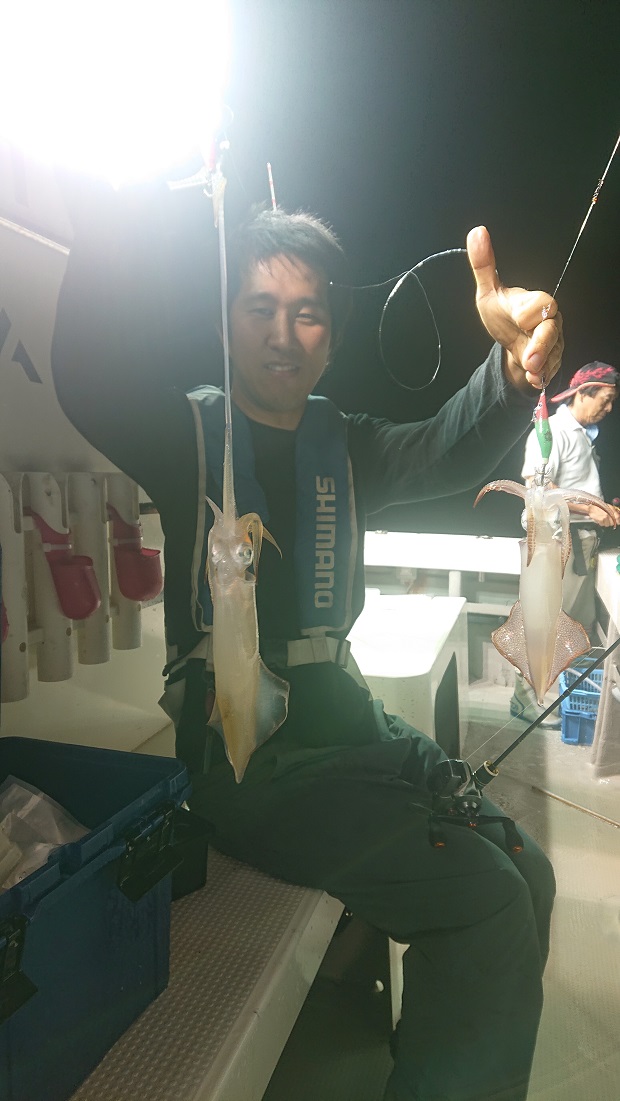 当店スタッフ 7月10日敦賀の一美丸さんにてイカメタルに行ってきました、イカメタル連日好調の様です!薄明るい内はスッテは20号、20時頃からは15号~12号で釣りをしました、10m~40mの水深でよくアタリがありました。自身の釣果は41杯でした。鉛スッテはクレイジーオーシャンのメタラーでドロッパーはクレイジーオーシャンのハードパンチャー、DUELのEZスッテを使いました。船全体的に赤緑、赤白、ピンク、オレンジブルーが良く当たっていました。
