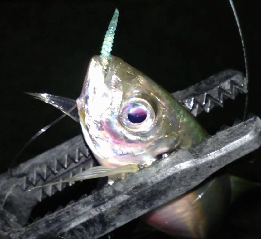 蛍光ラメと点発光でアジにアピール!!発光時のカラーが、水中でのカラーです!!