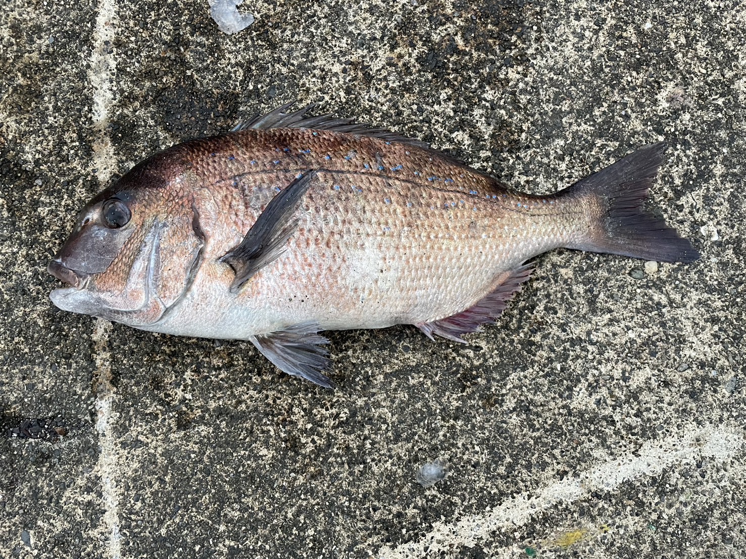 これを書いてるワタクシ田中は全然釣れてませんが奇跡的に掬い上げたマダイの写真でも貼っときます泣