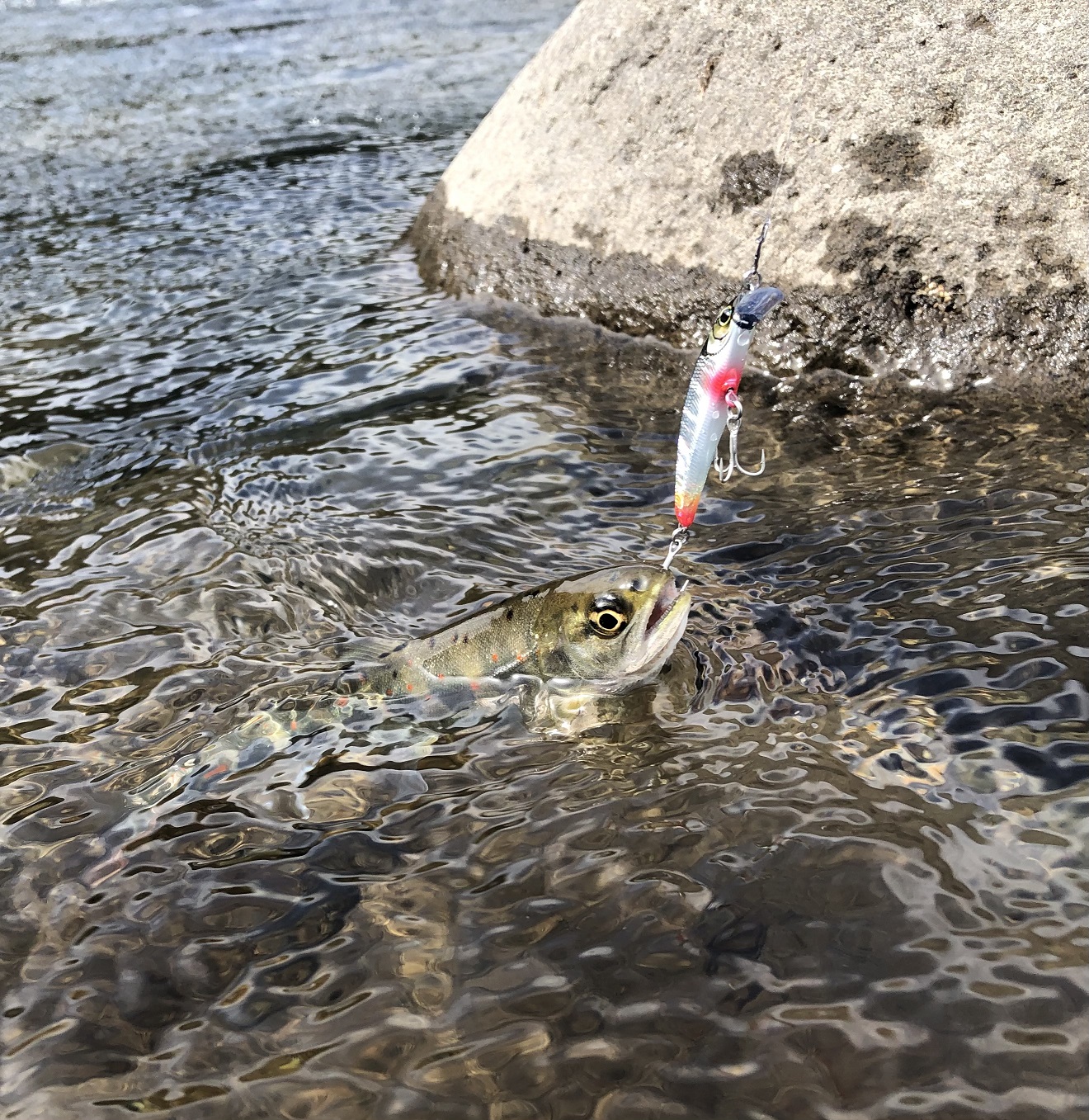 エサが苦手な広い平瀬ではルアーが有利です。やはり飛び道具は便利です。