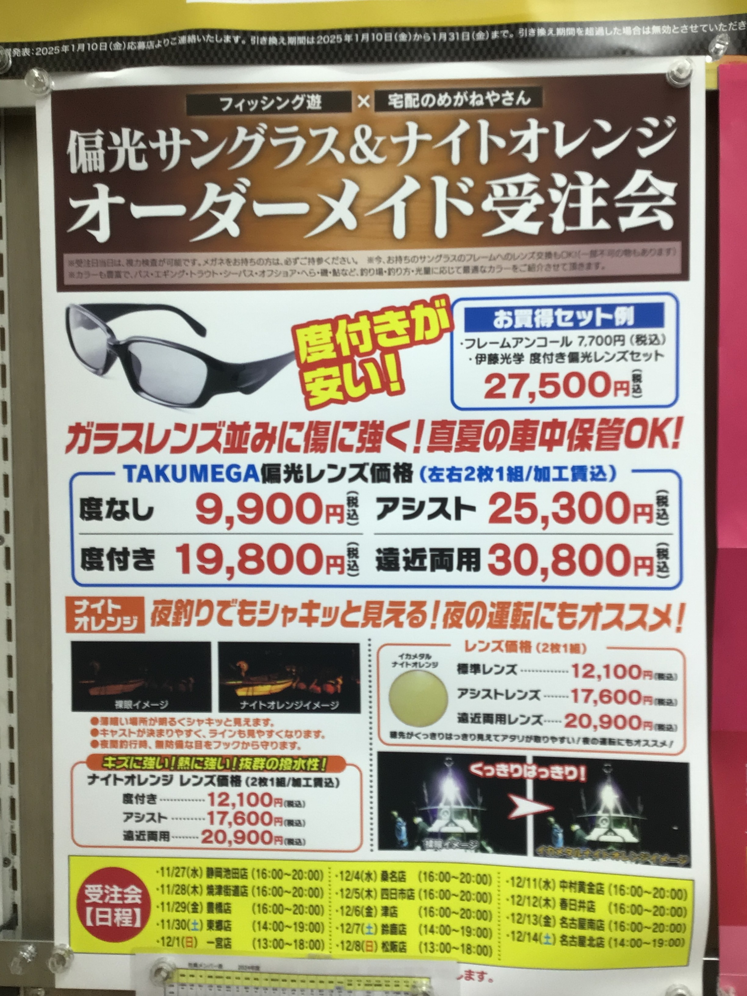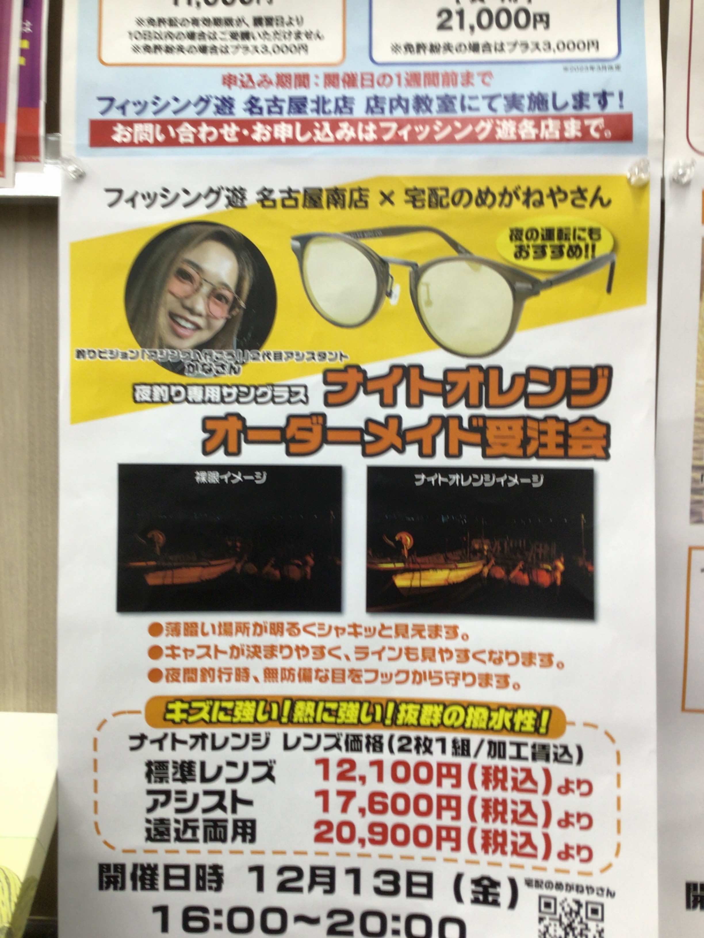 夜釣りや夜間、車の運転に便利なナイトオレンジもあります!!
