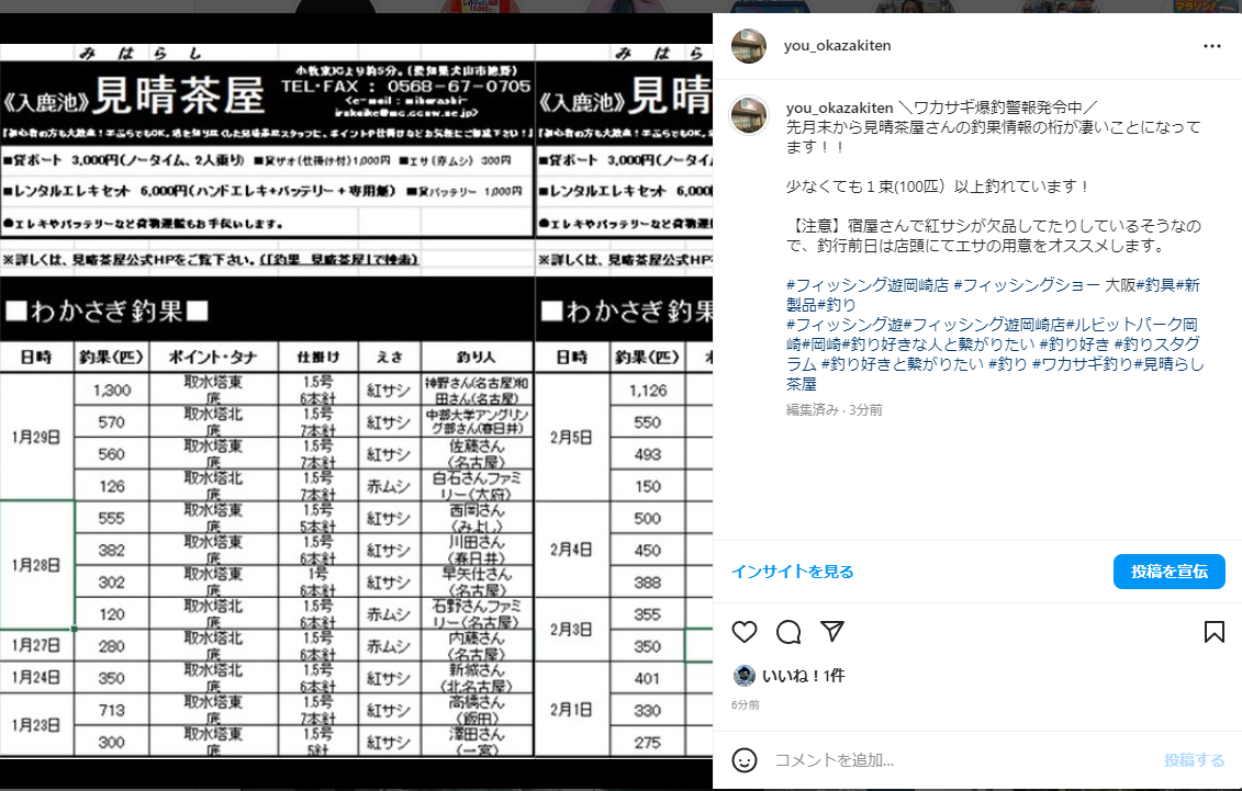 2023.02.09先月末から見晴茶屋さんの釣果情報の桁が凄いことになってます!!