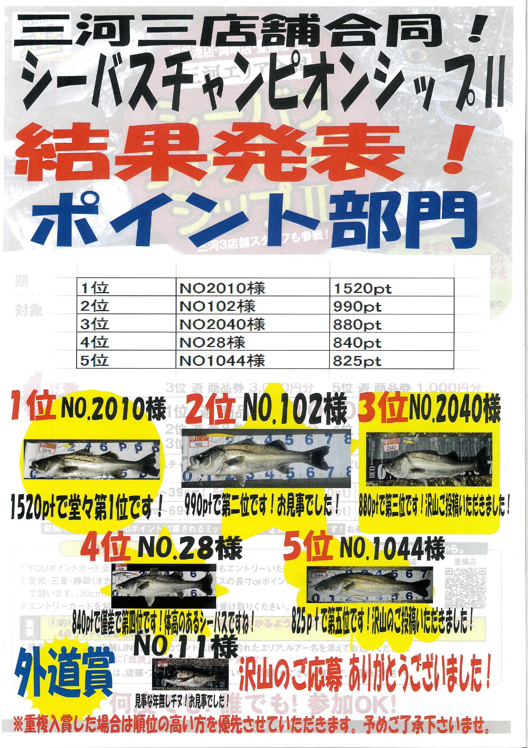 3月4日より開催させてもらっていますシーバスチャンピオンシップⅡ!