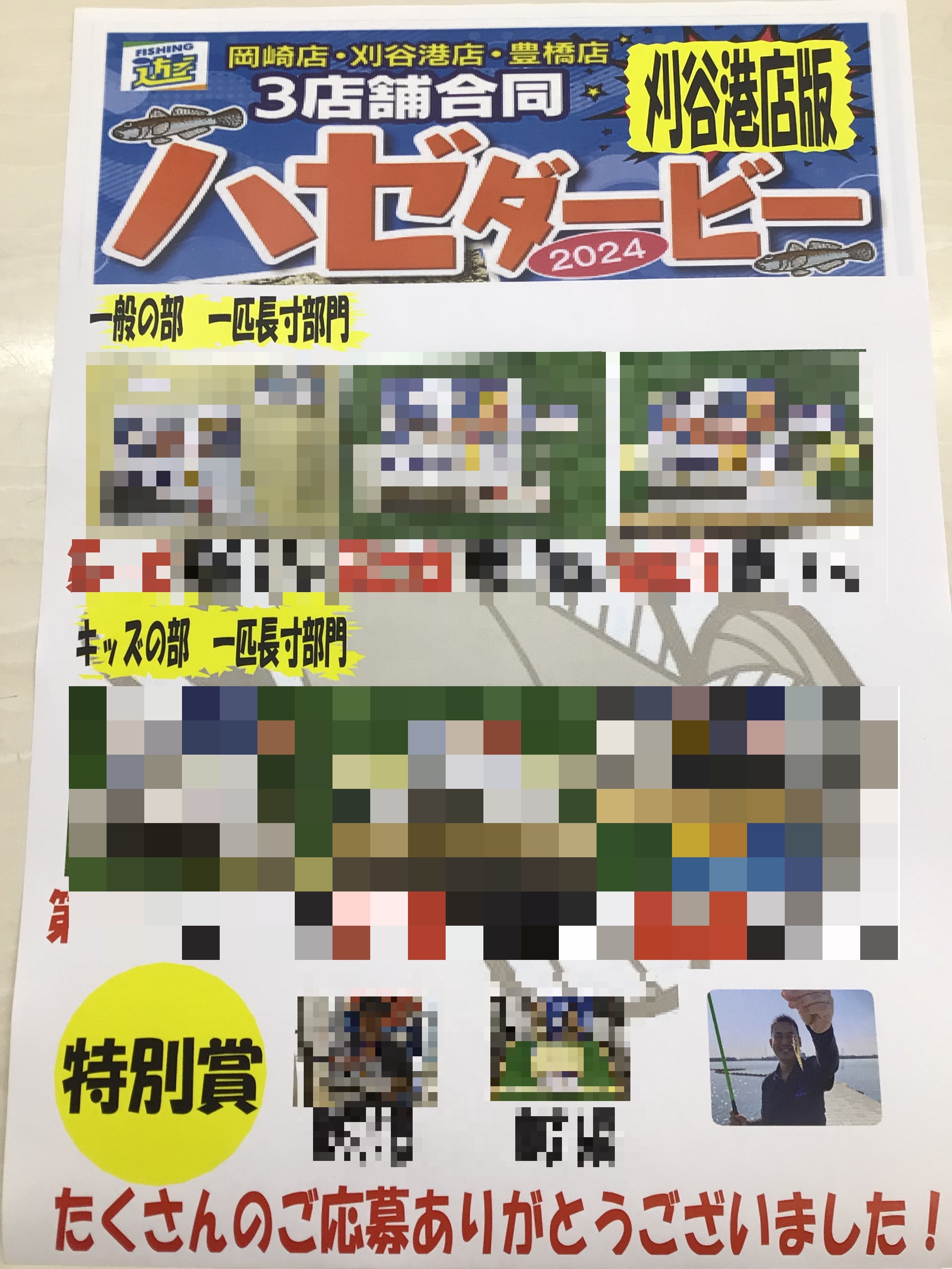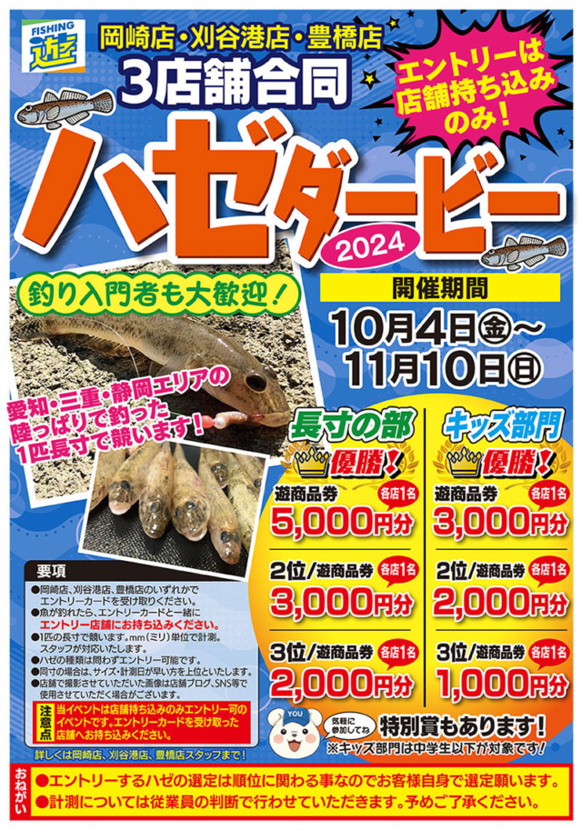 10月前半より開催しておりましたハゼダービー集計が終わり、結果を発表させていただきます!