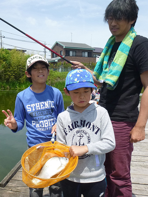 当日は、夏を思わせるような快晴のなか、18組のご家族がフナ釣りにチャレンジ。