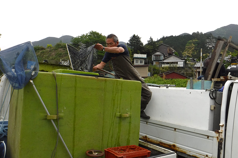 2017.05.235月9日には安倍川中流域を中心に、支流を合わせて4か所 合計500kgの稚鮎放流を行いました。