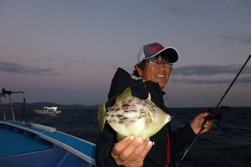 朝一のタイミングで順調のカワハギが釣り上がります。