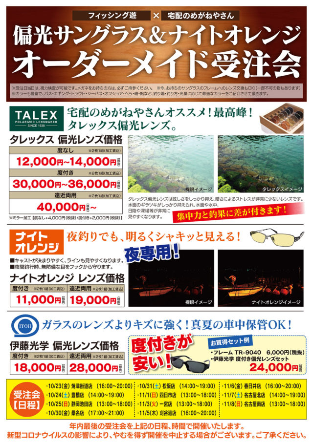 6月19日(土曜日)は宅配のめがね屋さんの偏光サングラス受注会を開催予定です。