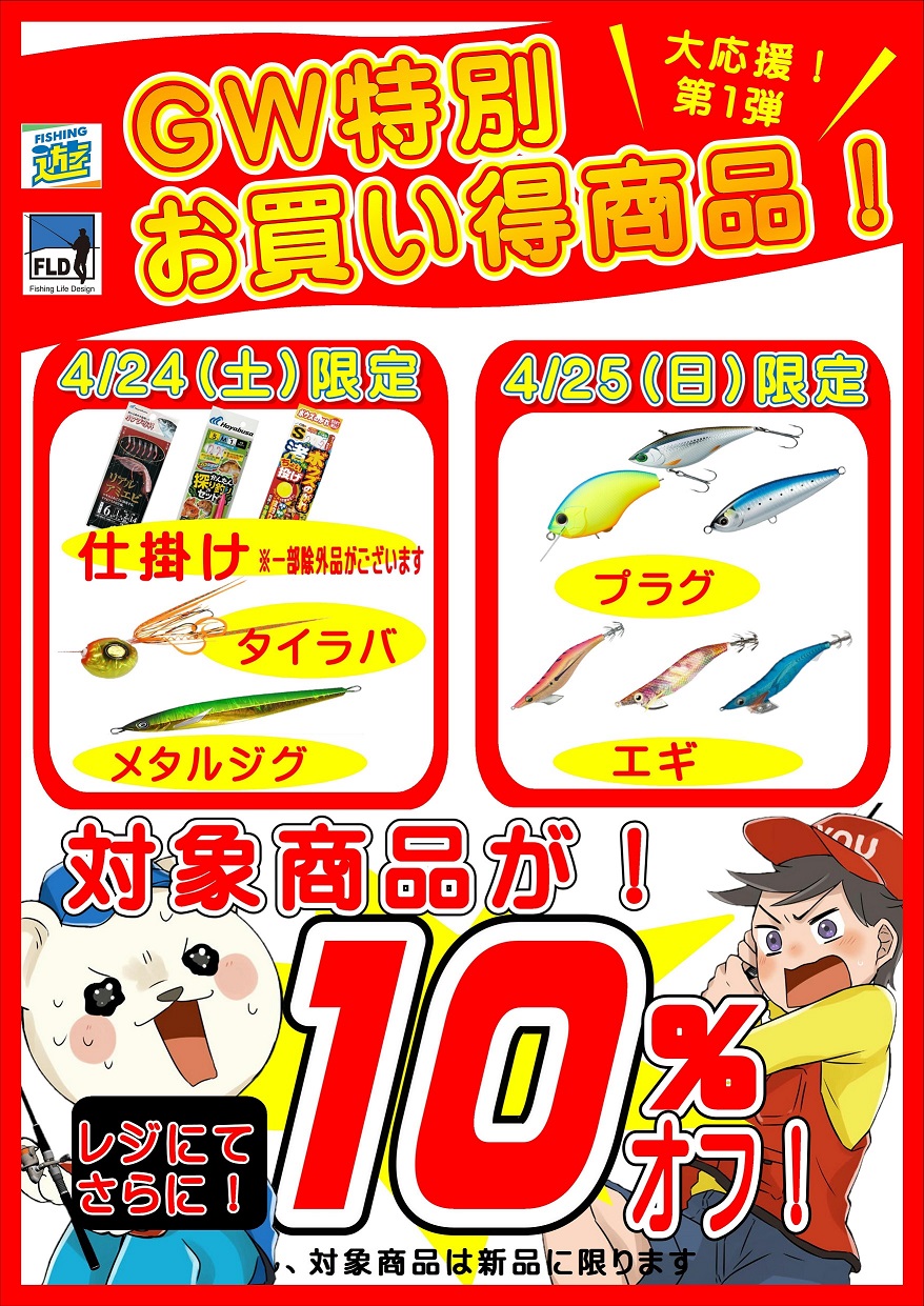 4月25日(日)限定! プラグ・エギが10%OFF!