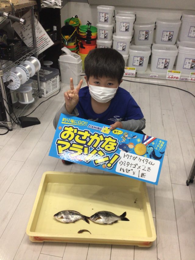 良型のウミタナゴ2匹、ハゼ1匹釣れたとのことです!!