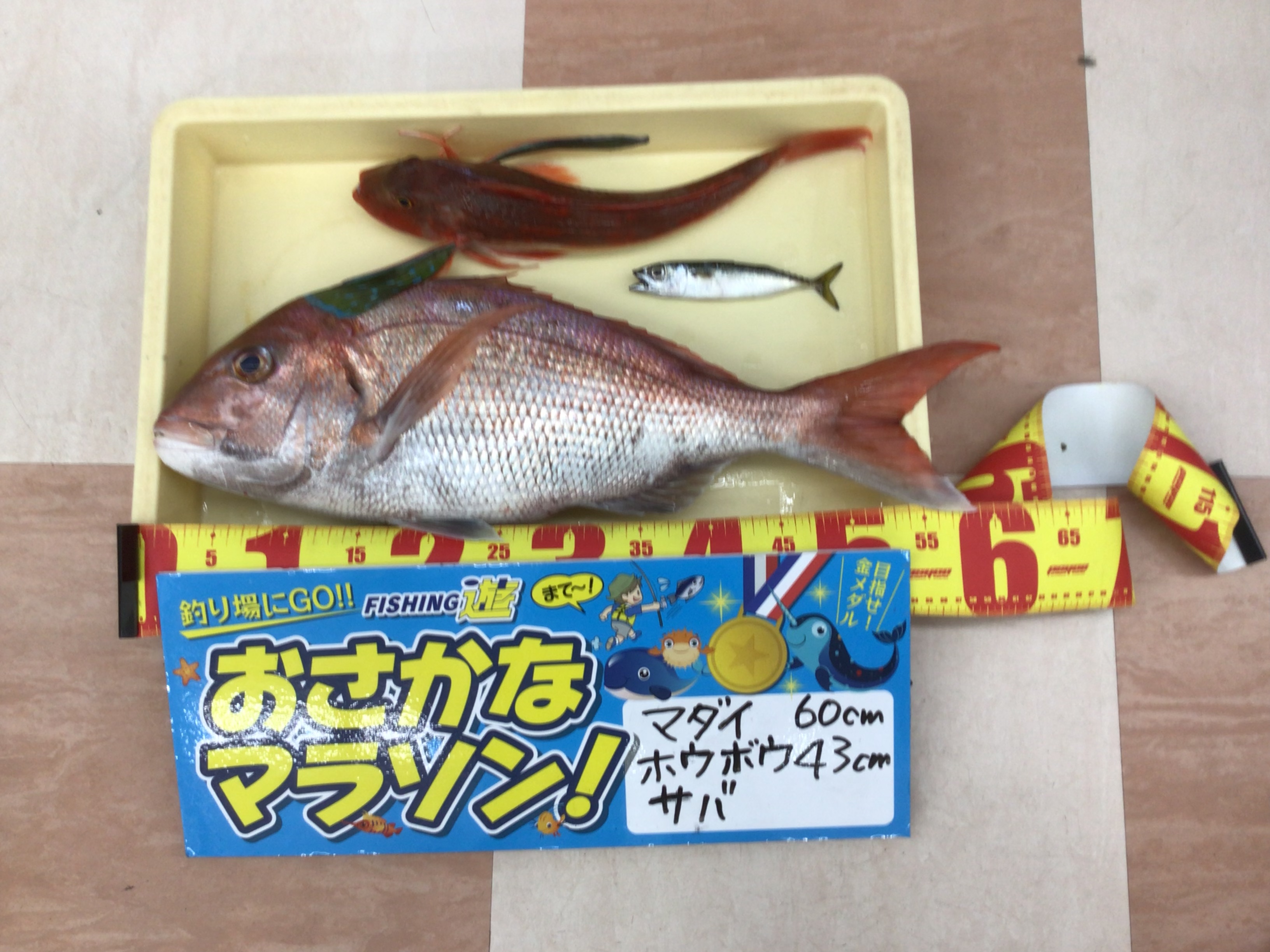 60cmのマダイは今までで一番大きくて、たいへん嬉しかったようです!!