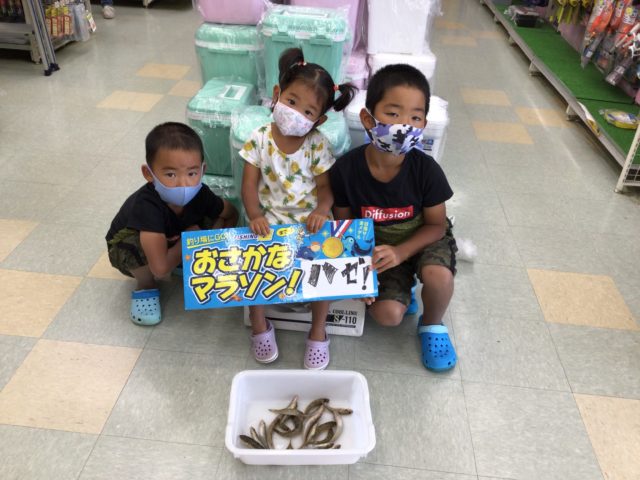 木曽三川の河口でハゼの釣果をお持ち頂いた、服部みなと君・つばき君・しおりちゃん!