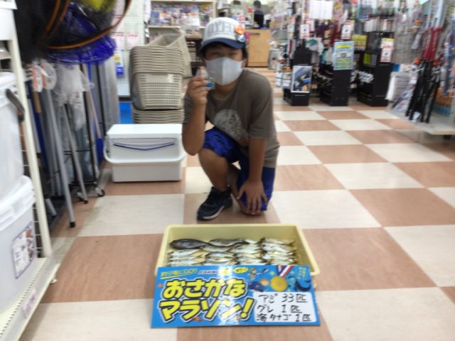 今回キズナくんが釣ってきてくれましたお魚は、なんとアジ33匹!!