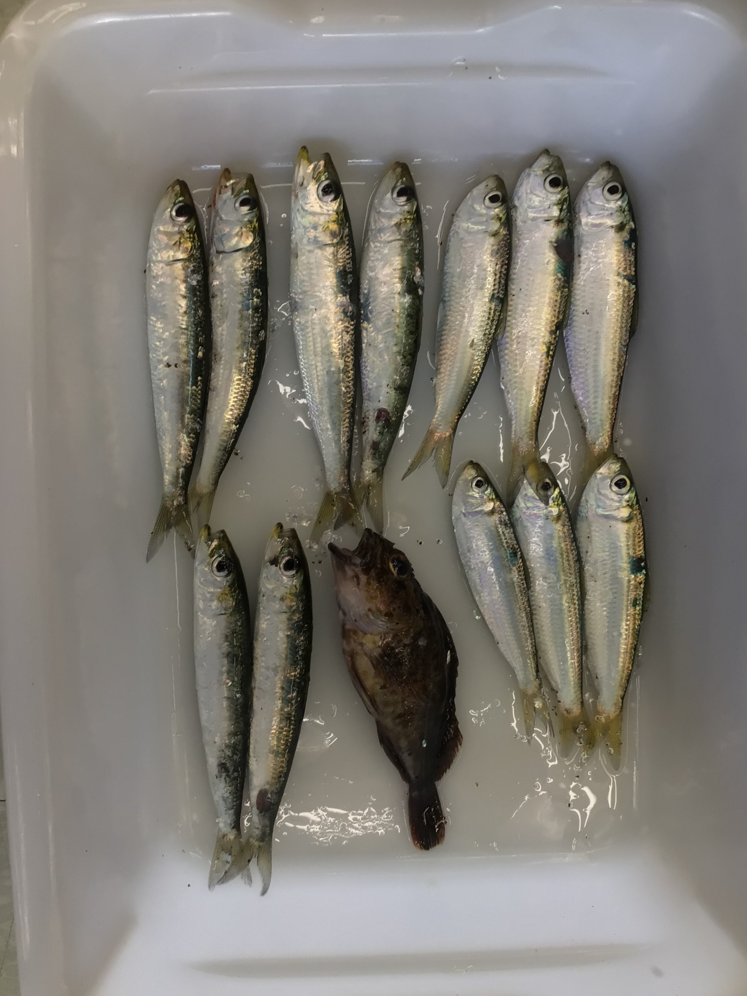 釣果はイワシ6匹、サッパ6匹、カサゴ1匹です!!