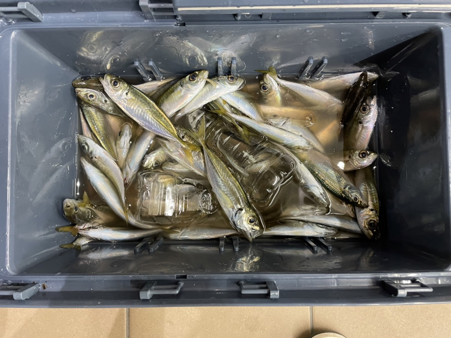 今回はサビキ釣りでなんとアジ200匹以上!ヒラという魚も20匹程混じっていますが