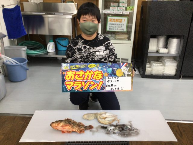 西口朔太郎君が尾鷲方面に行き、ブラクリの落とし込みとエギングで立派なオニカサゴとタコとイカ釣りました!おめでとうございます!これからもおさかなマラソン完走を目指してくださいね!