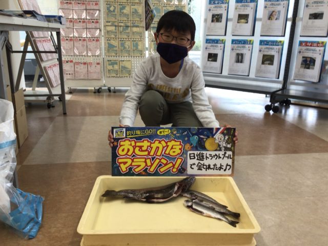 おさかなマラソン、日進トラウトプールで、ニジマス釣れたよ!!
