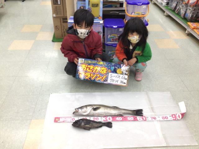 津のりき丸さんで良型シーバスとクロソイの釣果お持ち込み頂いたカイリ君とカナミちゃん!!!