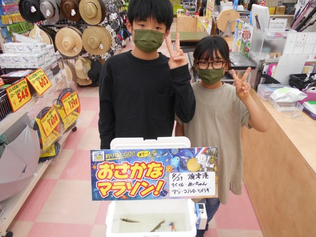 夏日に近い一日となった土曜日、りくくんとめいちゃんがアジ・コノシロ・ヒイラギを持って来てくれました^o^