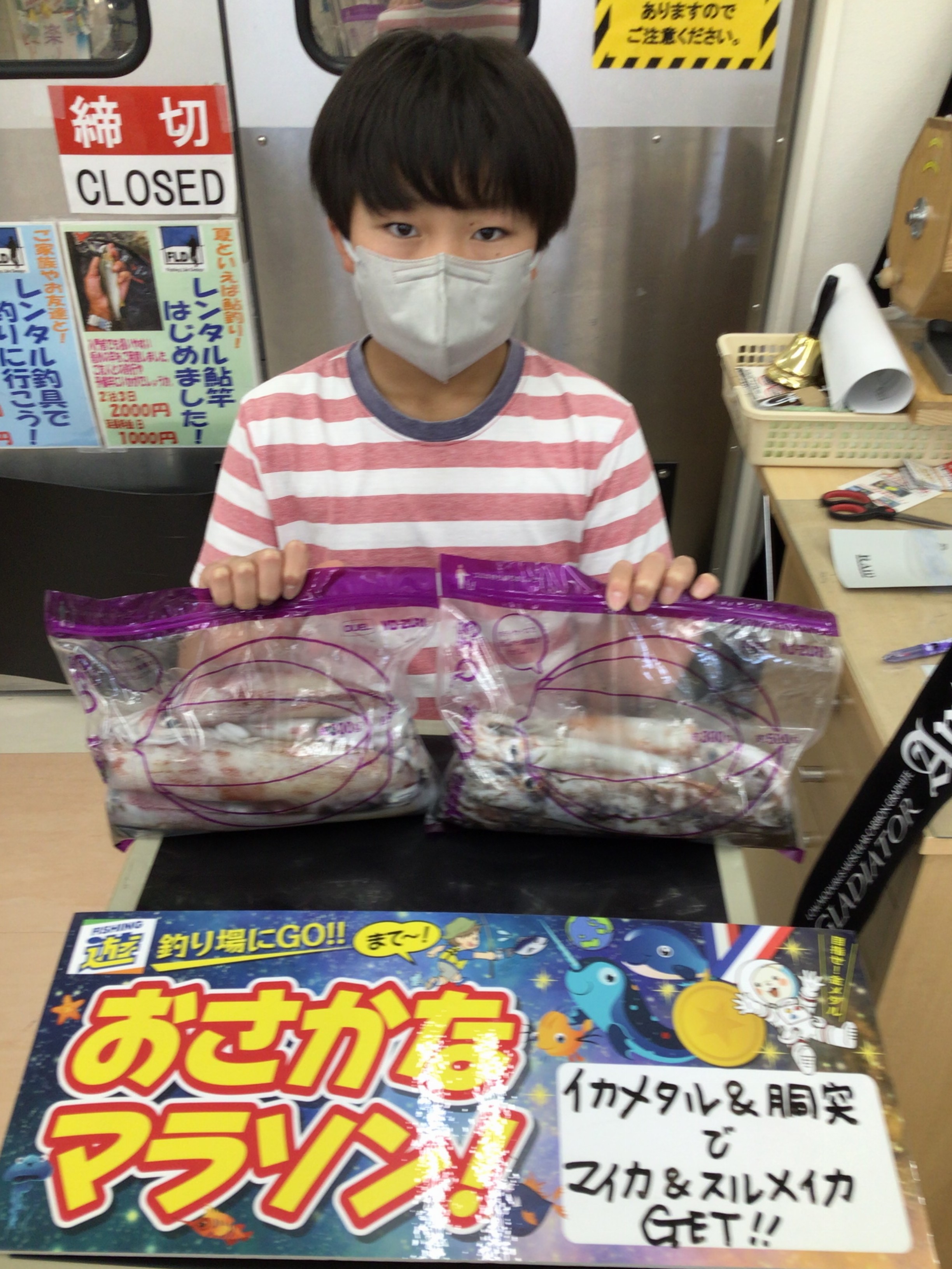 おさかなマラソン常連の吉田隼也くん、今回はなんとイカメタルと胴突でマイカとスルメイカを釣ってきてくれました‼︎鮎に続いてとても子供とは思えない釣種にチャレンジしているのは本当に素晴らしい\\\\٩( ‘ω’ )و ////隼也くんの成長が見ていて楽しいです(^-^)/