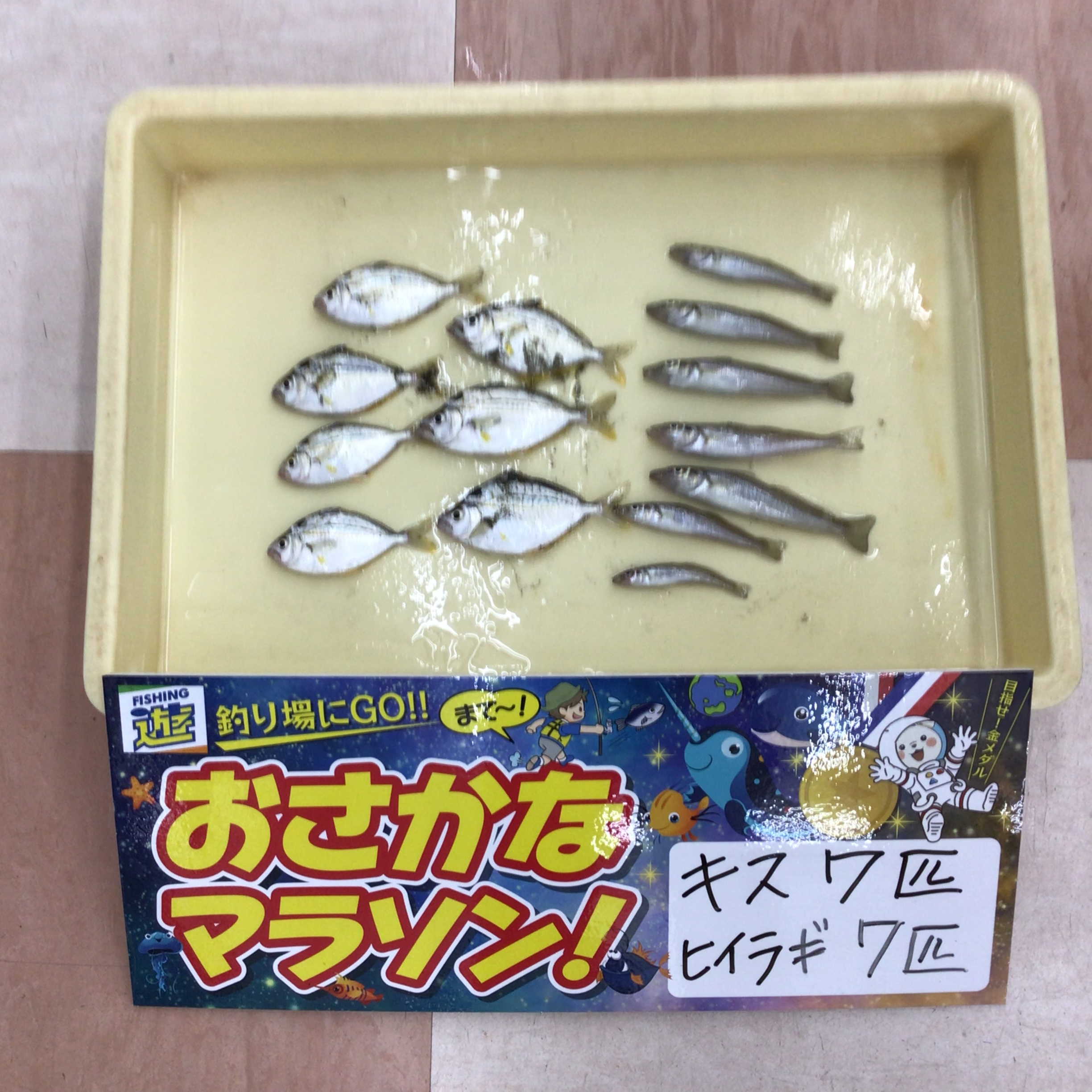 曇天でしたが、雨が降ってくるまで頑張りました♪ キスが7匹、ヒイラギが7匹の釣果でした。