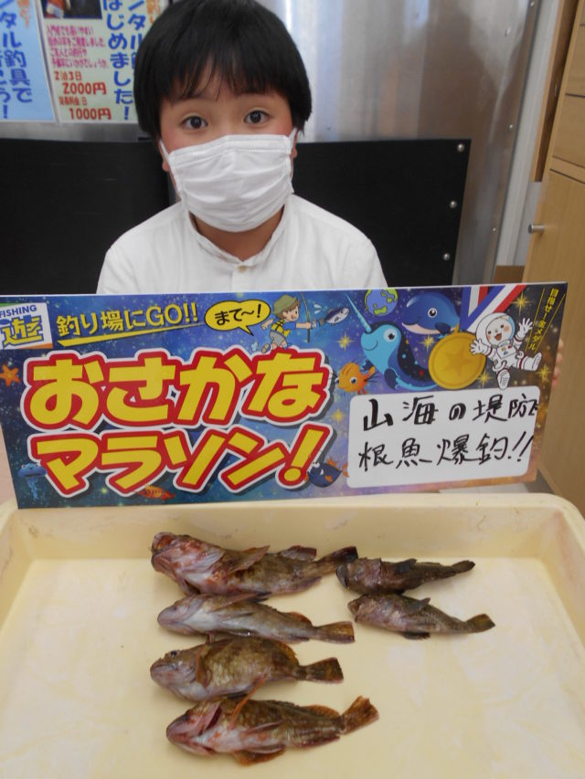 おさかなマラソン常連のともかず君が、山海で海水浴終わりに10~20㎝のカサゴを2時間で6匹以上の釣果を持って来てくれました。15㎝以下のカサゴはリリースしたとの事。海水浴後で疲れていたが良く釣れたとの話です。お疲れ様でした。