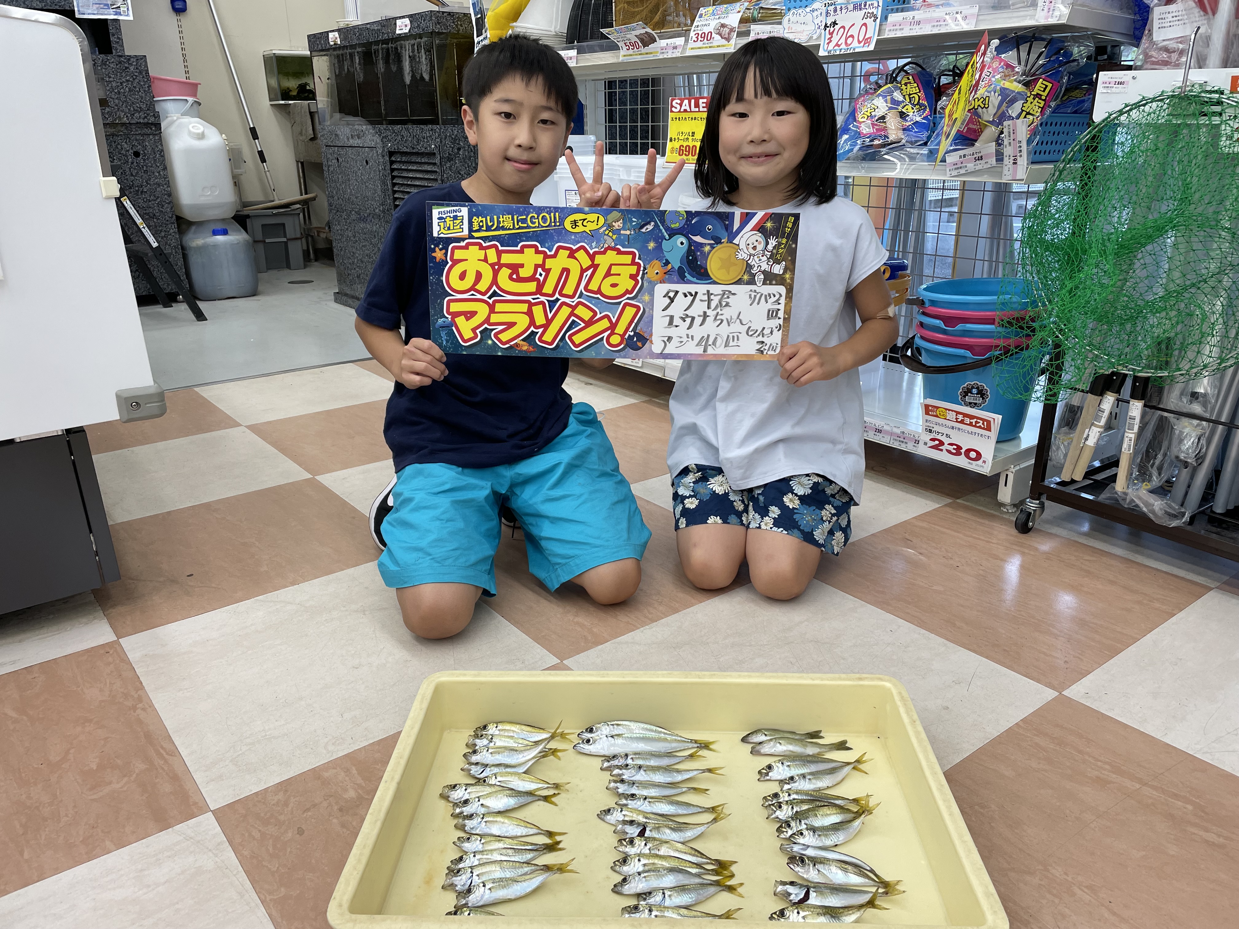 たつきくんとゆうなちゃん!アジ41匹、サバ2匹、セイゴ2匹の大量!