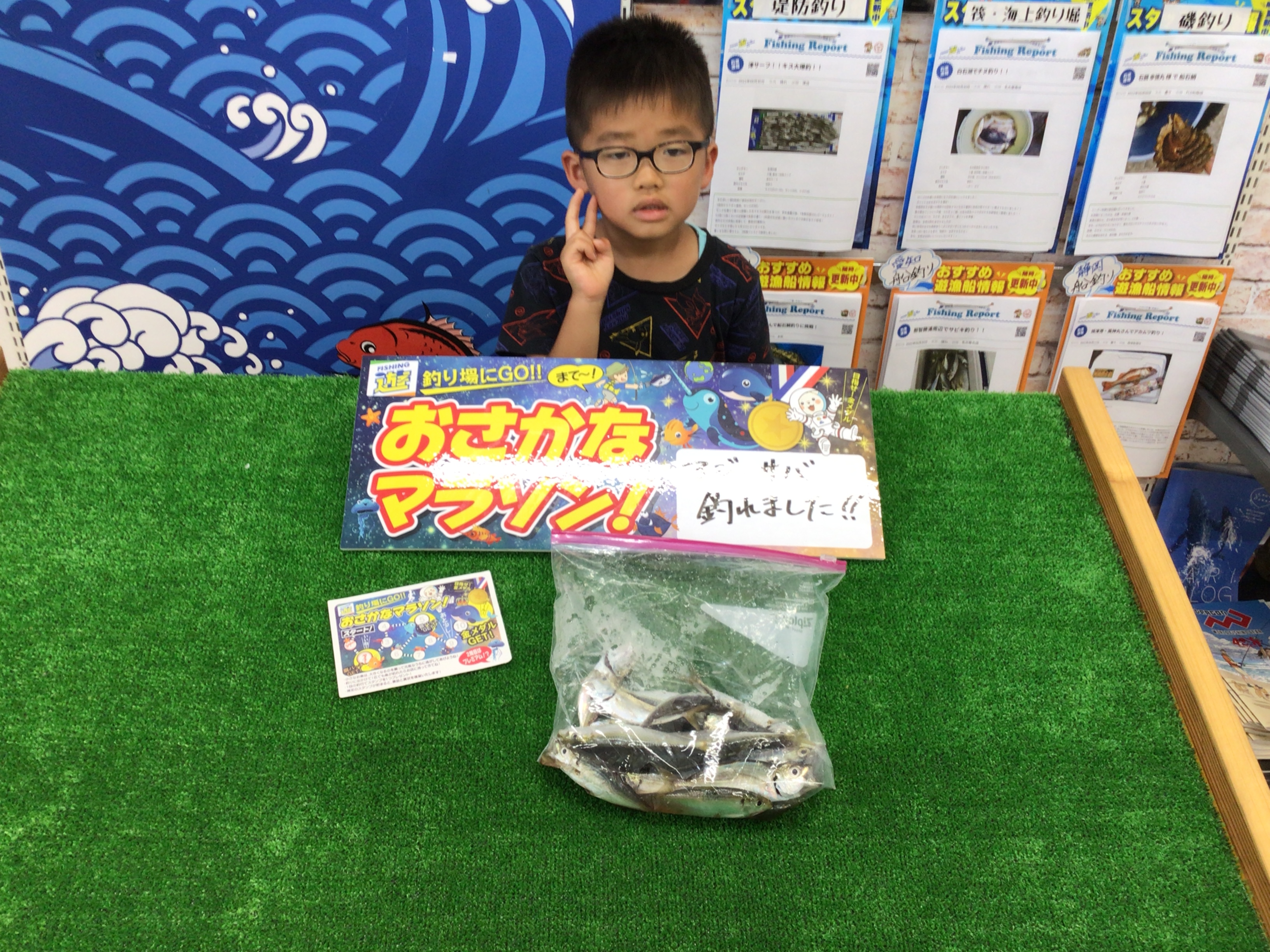 たいちくんよりおさかなマラソンのお持ち込みいただきました!朝の10時~12時までの短時間でアジ、サバ、サッパをお土産程度に釣って大満足!釣行場所は吉良サンライズパークでサビキ釣りでの釣果です!そして、銅バッチゲットです!次は銀バッチ目指して頑張りましょう♪