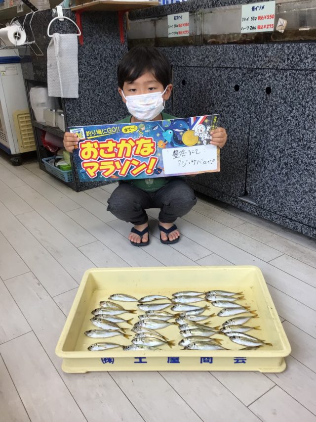 おさかなマラソン初参加のお客様が豊浜釣り桟橋にてサビキ釣りにてアジ30匹前後に、サバ・ウルメイワシなど!!