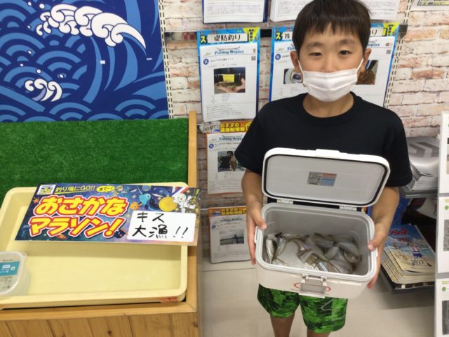 おうすけ君よりおさかなマラソンのお持ち込みありました!西浦へ釣行!ちょい投げ釣りでキスを20匹ほど釣ってきてくれました♪ 朝から昼にかけて釣りをのんびりできたそうです♪ あと一回で銀バッチゲットです!次回も楽しみにしてますよ♪