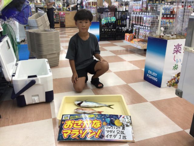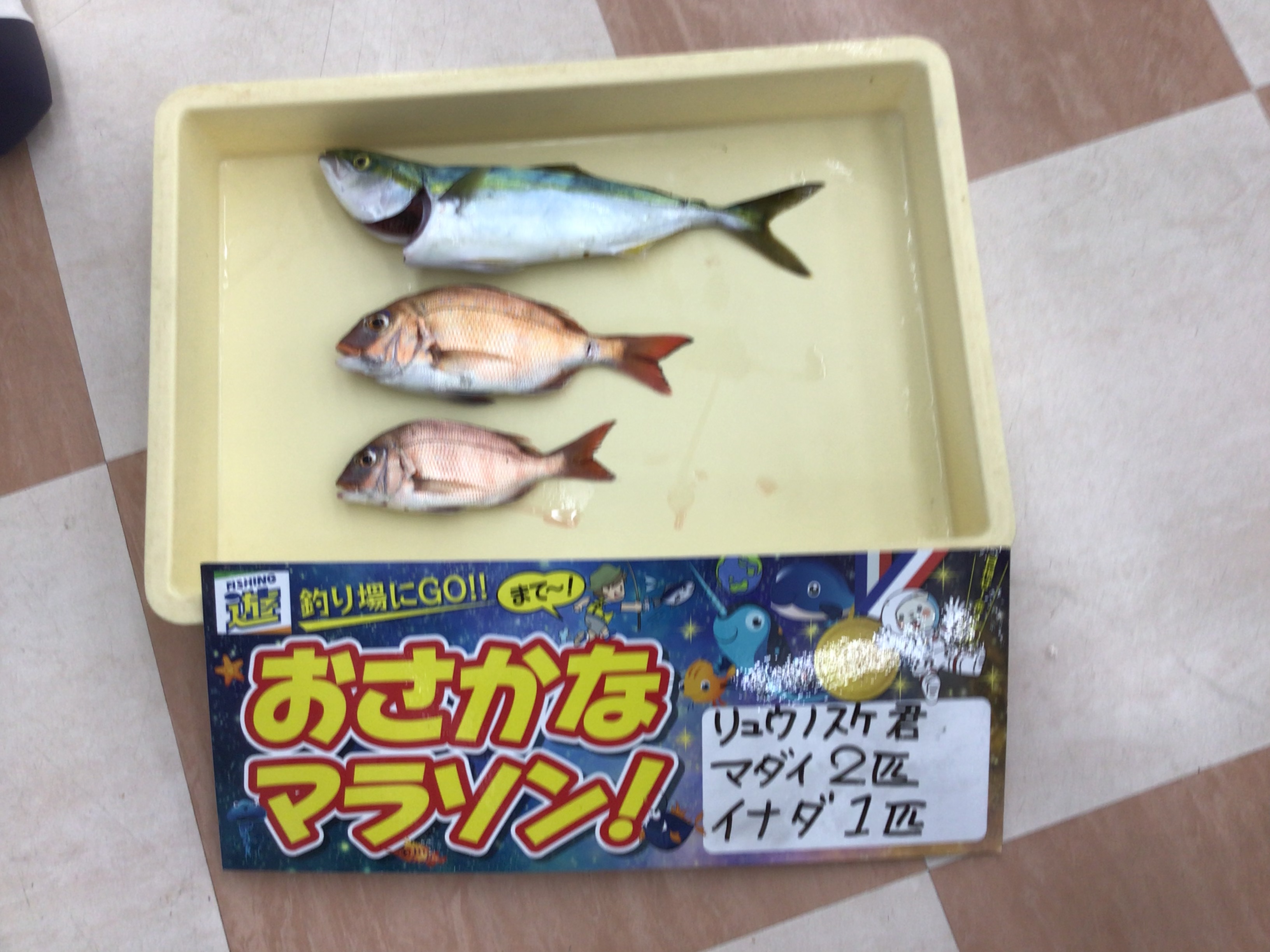リュウノスケくんが、初めての船釣りに行って、マダイ2匹とイナダ1匹を釣って持ってきてくれました!!