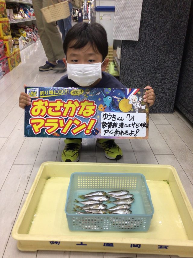 ゆうき君、7歳 サビキ釣りでアジ多数ゲットです。